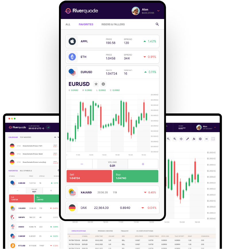 Riverquode gives you access to a diverse selection of trading instruments, all in a seamless platform with real-time alerts and notifications.